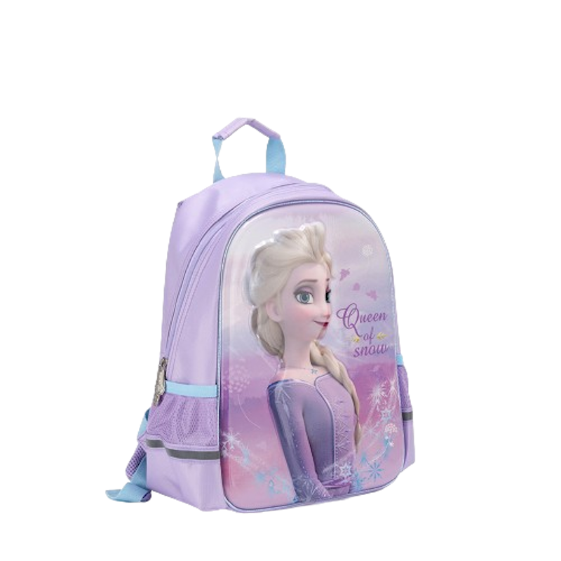 กระเป๋าเป้สะพายหลังสีม่วงพาสเทลลายเจ้าหญิงจากการ์ตูนดัง Frozen เหมาะกับเด็กผู้หญิงโดยเฉพาะ ทำจากวัสดุผ้าใยสังเคราะห์ที่มีความแข็งแรงทนทานและน้ำหนักเบา ขนาดกระเป๋า ไม่เล็กมาก ด้านในมีช่องเก็บของใหญ่ 1 ช่อง และช่องสำหรับใส่ Tablet 15 นิ้ว บุนวมนุ่ม ด้านข้างกระเป๋ามีช่องใส่ขวดน้ำทั้ง 2 ข้าง สายสะพายสามารถปรับระดับเพื่อให้เหมาะกับผู้ใช้งานได้ ดูแลรักษาง่าย หากมีคราบสกปรกสามารถใช้ผ้าหมาดเช็ดแล้วผึ่งให้แห้งได้