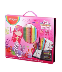 ชุดกล่องของขวัญระบายสี KeyRoad นางเงือก มาพร้อมกับอุปกรณ์ครบชุดเพื่อสนับสนุนกิจกรรมศิลปะสำหรับเด็กๆ ได้อย่างเต็มที่ รวมถึงดินสอสี 12 สี, ปากกาสีมาร์กเกอร์ 6 สี, กาวกากเพชร 6 อัน, กระดาษสี 10 สี และสติ๊กเกอร์ 43 ชิ้น, เครื่องเหลา 1 อัน เป็นชุดที่สมบูรณ์แบบสำหรับการส่งเสริมทักษะและพัฒนาการของเด็ก